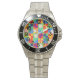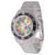 Cette montre pour hommes a un design Bauhaus de carrés avec des formes étranges à l'intérieur, répété à travers le design.
