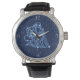 Montre avec le symbole zodiaque pour Aquarius en bleu argenté doux, recouvert d'étoiles de la constellation, contre un bleu foncé, arrière - plan ciel étoilé