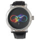 Symbole artistique à l'infini avec une belle plume arc-en-ciel sur un arrière - plan blanc. Style tatouage.