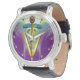 Montre SYMBOLE VÉTÉRINAIRE DE CADUCE D'OR / Vert pourpre