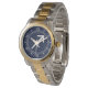 Un chrome argenté comme Sagittarius symbole zodiac sur un arrière - plan d'impression marine en fibre de carbone bleu de style automobile. Un design urbain moderne et racé pour une grande idée cadeau de montre d'anniversaire sur mesure. Utilisez le lien "Demandez à ce concepteur" pour nous contacter avec vos demandes de design spécial ou pour obtenir de l'aide sur vos besoins de personnalisation.