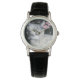 A pastel and pencil drawing of a lovely smoke tabby cat with one eye adorns this watch!