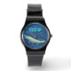 Pêche à thème, tarpon montre pour le pêcheur d'eau salée. Image Tarpon avec plan d'eau bleu et trois initiales monogrammes en bleu vif. Un cadeau parfait pour tout pêcheur en haute mer. Cette sangle noire est l'une des nombreuses options de bande et de visage pour une montre pour hommes. Choisissez celui que vous préférez.