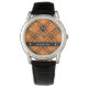 Échantillon de tartan moderne orange et noir halloween. Texte et monogramme personnalisés.