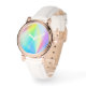 Cette belle montre présente un design irisé et moderne dans des couleurs pastel arc-en-ciel. On dirait les aurores boréales. Coloré et magique. Surveillez-la, adolescente, fille et un beau cadeau ! Conçu par Marions Artwork.