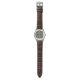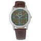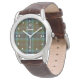 Élégante montre bracelet en cuir, avec le classique clan bleu et marron Thomson tartan plaid motif, sur le visage, avec des chiffres blancs et des points pour les heures. Un texte personnalisé blanc lit Thomson, et peut être personnalisé pour lire ce que vous voulez.