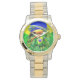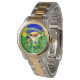 Le Toco Toucan brésilien sur la jungle tropicale, portant une écharpe aux couleurs du drapeau brésilien. Pour les amoureux du Brésil et pour les supporters de la Coupe du Monde de Football / Football !