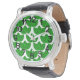 Cette montre pour hommes a un design scandinave de trios de feuilles qui se répètent à travers le design dans trois tons de vert.