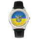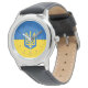 Une montre bleue du 28 mai avec le drapeau de l'Ukraine, un drapeau bleu et jaune avec les armoiries ukrainiennes (emblème) avec un trident au centre
