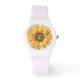 © Lisa Audit / Wild Apple. Un tournesol jaune entouré d'abeilles. L'image a un arrière - plan blanc cassé avec du texte écrit dessus.