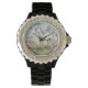 Une montre montrant une image rêveuse d'une licorne blanche avec une crinière arc-en-ciel dans un champ de fleurs. Dans l'arrière - plan se trouvent des montagnes majestueuses. Le cadeau parfait pour donner à ceux qui aiment les licornes magiques et mystiques. Contient du contenu génératif.