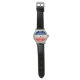 Celebrating the USA's 250th anniversary. The red, white, and blue watch has the word 'USA' at the top (instead of 12). The year 1776 is in the place of 9 and the year 2026 is in the place of 3. 250 is at the bottom instead of 6. The top stripe is blue and has white stars. The center stripe is white. The bottom stripe is red with white stars.