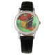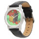 Montre avec un chaton noir dans le style de Van Gogh! Un chaton mignon est assis à côté d'un vase aux fleurs rouges. Un mur et un sol vert donnent une ambiance printanière. Un cadeau fantastique pour les amoureux de les chats et les collectionneurs d'art hollandais !