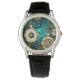 Bijoux, montre en or avec chaîne d'or et clés sur un arrière - plan texturé vert. Style Steampunk.