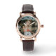 Montre Veille féminine - Carré personnalisé Brown cuir