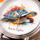 Make every second a statement with this exquisite timepiece, showcasing a magnificent turtle rendered in a breathtaking watercolor spectrum of radiant blues, lively greens, and fiery oranges. The "Vibrant Voyager" captures the dynamic spirit of marine exploration and the vibrant beauty of underwater life, bringing a unique splash of artistic color to your personal style. Its intricate details and striking hues transform a functional accessory into a wearable work of art, sparking joy with every glance.