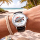 Personalize this unique watch to make it truly your own or a memorable gift for a loved one. Imagine customizing it to display "Time for Adventure" for the explorer at heart, "Live in Full Color" as a daily reminder of vibrancy, "Cherished Moments" for a special date or occasion, or "Your Journey Begins" to inspire every new day. Let the "Vibrant Voyager" watch be a constant source of inspiration, reflecting the beauty of the ocean and the vibrancy of your unique story.