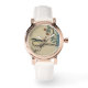 Antique watercolor artwork of a bird on a blossom branch on pretty ladies watch.