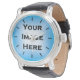 Ce modèle de montre personnalisé est un design simple, polyvalent et classique avec des tiques noires qui marquent les heures. Pour customiser ce produit, téléchargez votre propre image ou photo arrière - plan comme indiqué ci-dessus.