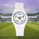 Votre propre nom et l'équipe de football que vous soutenez sur une montre. Thème de couleur bleue.