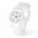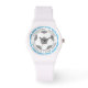 Votre propre nom et l'équipe de football que vous soutenez sur une montre. Thème bleu ciel clair.
