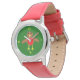 Cette magnifique montre est dotée d'un joli personnage de Robin de Noël avec un sein rouge vif, un corps brun et des yeux noirs beady. Il a son bec jaune large ouvert comme il chante une carol de Noël. Ses ailes sont étirées pendant qu'il attend joyeusement Noël.
