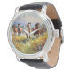 Terrific gift idea for cowgirls, cowboys and western art lovers, a gorgeous painting of wild horses running in a grassy field of wildflowers on a watch of your choice. Shown in the large vintage leather, but there are many various styles to choose from.