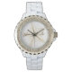 Experience coastal elegance with the Women's Rhinestone White Enamel Watch, now featuring a face inspired by the delicate beauty of a sand dollar and graced with the exclusive signature of Edna Stewart. The watch's face captures the natural pattern of a sand dollar, creating a soothing, beachside aesthetic that is both timeless and unique. Edna Stewart's signature adds an authentic touch, making each timepiece not just a watch but a wearable piece of art.