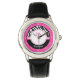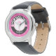 Gymnastique à tirage zébrée sauvage montre poignet avec de jolis détails roses. Une silhouette de gymnaste pose à l'intérieur d'un cercle et il y a une bannière "pois-pois" pour le contraste. Ajoutez votre propre nom avant de commander ! En outre, utilisez le bouton "customiser" pour plus d'options, y compris une police différente! ©gollygirls.com