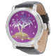 Si vous aimez le confort de la plage, vous apprécierez ces montres design aux motifs de palmiers colorés et aux arrière - plans violets.
