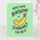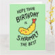 Cette carte de jeu de mots moderne et minimaliste contient le texte "Hope Your Birthday is Shrimply the Best". Cette carte kawaii mignonne et drôle avec une illustration de crevettes est parfaite pour tout amateur de jeu de mots.
