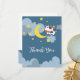 Ce design baby shower sucré présente un ciel nocturne, une vache et un croissant de lune.