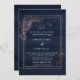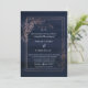 Cadre moderne et élégant rose doré géométrique à motif floral avec faire-part de mariage arrière - plan bleu minuit. Personnalisez le texte, le style de police, la couleur et la taille.