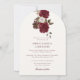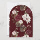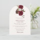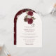 Moody burgundy arched wedding invitation for autumn weddings, featuring a rich, romantic, and elevated aesthetic inspired by old money elegance and vintage botanical design—perfect for the refined, style-conscious bride. The trending arched shape adds a modern yet timeless touch. Style with velvet ribbons, gold accents, and deep wine florals.