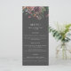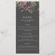 Un élégant menu de mariage dans une couleur foncée gris foncé et blanc avec des fleurs d'aquarelle en violet aubergine, orange rouillé et feuilles verts. Personnalisez avec vos noms et votre date de mariage.