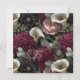 Un luxueux et complexe motif sans couture avec un bouquet de fleurs dans un style sombre et moody. La composition comprend de grandes dahlias bordeaux et violets foncés, d'élégants lys calles blancs et des pivoines roses douces. Le feuillage est un mélange de feuilles gris-vert muet et de baies délicates, le tout dressé contre un arrière - plan noir solide. Les couleurs riches et les textures détaillées donnent à l'image une sensation dramatique et vintage.