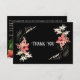 Express votre gratitude dans le style avec ce carte de remerciements élégant, parfait pour toute occasion. Doté d'un arrière - plan noir audacieux et décoré de délicats motifs floraux dans des tons doux et blancs, cette carte offre un bel équilibre entre raffinement et chaleur. L'avant dit simplement "Merci" en typographie gracieuse, tandis que l'arrière offre de l'espace pour un message personnalisable, vous permettant d'ajouter une touche personnelle. Idéal pour les mariages, les événements spéciaux ou les notes chaleureuses, ce design ne manquera pas de donner une impression durable à vos destinataires.