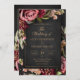 Une faire-part de mariage florale foncée et moody classique et élégante. Parfait pour un thème mariage en soirée. Flore et feuillage avec ombres et tons sombres. Cette invitation comporte un arrière - plan noir avec une police serif intemporelle dorée accentuée par une police de script élégante, également dans la même teinte dorée. Faire-part de mariage floral d'hiver Moody foncé.