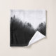 Un rideau de douche avec une scène boisée brumeuse avec du brouillard doux et des arbres silhoués, créant une atmosphère de salle de bain rêvée et tranquille.