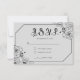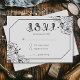 Découvrez l'enchantement avec cette carte RSVP de mariage gothique, idéale pour un mariage d'Halloween. Ce design moderne et élégant allie une esthétique boho-foncé à une ambiance moody et éffrayante, capturant l'essence d'une célébration d'octobre. Infinement décorée de motifs de chauve-souris et d'araignée, à côté d'éléments floraux délicats, cette invitation présente une palette de couleurs grises et noires frappante. Donnez le ton de votre journée spéciale avec un mélange unique de beauté et d'élégance intemporelle.