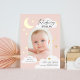 Un design ludique et élégant qui vous propose une photo en forme d'arc moderne, associée à des polices élégantes, des étoiles dessinées à la main, des nuages et une lune en croissant. L'arrière comporte un collage photo de 3 étoiles et plus. N'oubliez pas de visiter la collection pour en savoir plus.