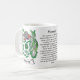 Crête de famille de Mooney comprenant l'histoire et la signification du nom de Mooney sur une tasse en céramique. Nous avons 1000's des crêtes (manteau des bras). Si nous n'avons pas votre manteau de bras sur notre site de Zazzle nous faisons savoir et nous serons heureux de l'ajouter. Pour information envoyez-nous chez heraldry505@hotmail.com. Ces crêtes et information peuvent être employées sur tous les tasses et steins de Zazzle.