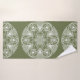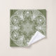 Ce mandala blanc est posé sur un arrière - plan de mousse foncée ou vert olive. Les couleurs sont harmonieuses et équilibrées. Partie de la collection Howlsplann Mandala.