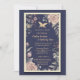 Présentez l'invitation Moth, Rose & Thistle Mariage Design Invitation, un mélange d'élégance intemporelle et de charme fantaisiste. Avec un arrière - plan bleu marine sophistiqué encadré par une bordure beige clair, cette invitation est ornée d'illustrations complexes de roses et de chardons, complétée par une représentation unique d'un papillon de nuit près du centre supérieur. Les motifs floraux créent un cadre romantique et naturel, ce qui en fait un design parfait pour les couples à la recherche d'une touche particulière et raffinée pour leur journée spéciale. Customisez l'espace central avec votre texte personnalisé pour faire de cette exquise invitation exclusivement à vous.