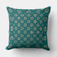 Un Oreiller à Throw ou un Coussin avec un motif de Fleurs de Crème stylisées en deux tailles, sur un Arrière - plan Turquoise foncé; de la collection Posh & Painterly "Jungle Drums".,