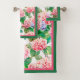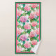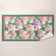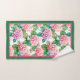 Belle hydrangée rose et bleu bordée de rose chaud et de vert, cette serviette de bain met l'accent sur votre décor maison.
