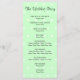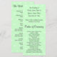 Un programme de mariage avec un texte personnalisé en noir et un joli arrière - plan motif de pois vert menthe pastel. Un design simple et élégant avec une motif subtile dans les tons clairs.