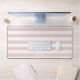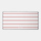 Ce tapis de bureau porte un nom blanc ou un ensemble monogramme d'initiales sur un motif rayé classique en rose vif sur blanc.