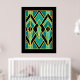 Cette affiche a été créée par moi dans le cadre d'un motif qui a été agrandi et coloré dans les tons bleu et turquoise, noir et or. Il fait une affiche frappante. Un excellent article à encadrer et à mettre dans votre maison.