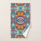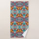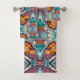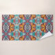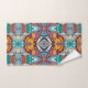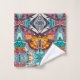 Serviette sertie dans un batik numérique motif de grands papillons sur un arrière - plan médaillon arabesque orné, dans les tons ambre, orange, aqua et beige
